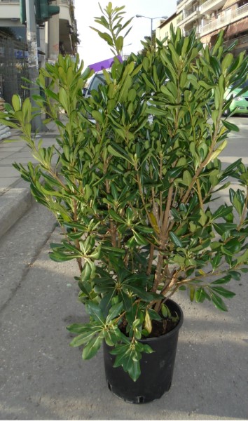 Evergreen shrub very common in Mediterranean countries with a maximum height of 3-4m in diameter from 1.50 to 2.50 m. Leathery, deep green foliage with rounded edges,it has creamy-white flowers in April-May. It fits easily in sunny, semi-shaded and shaded areas. Suitable for coastal planting. Planted singularly, in groups, and potting medium height fences. Withstands temperatures up -8/-10 ° C.