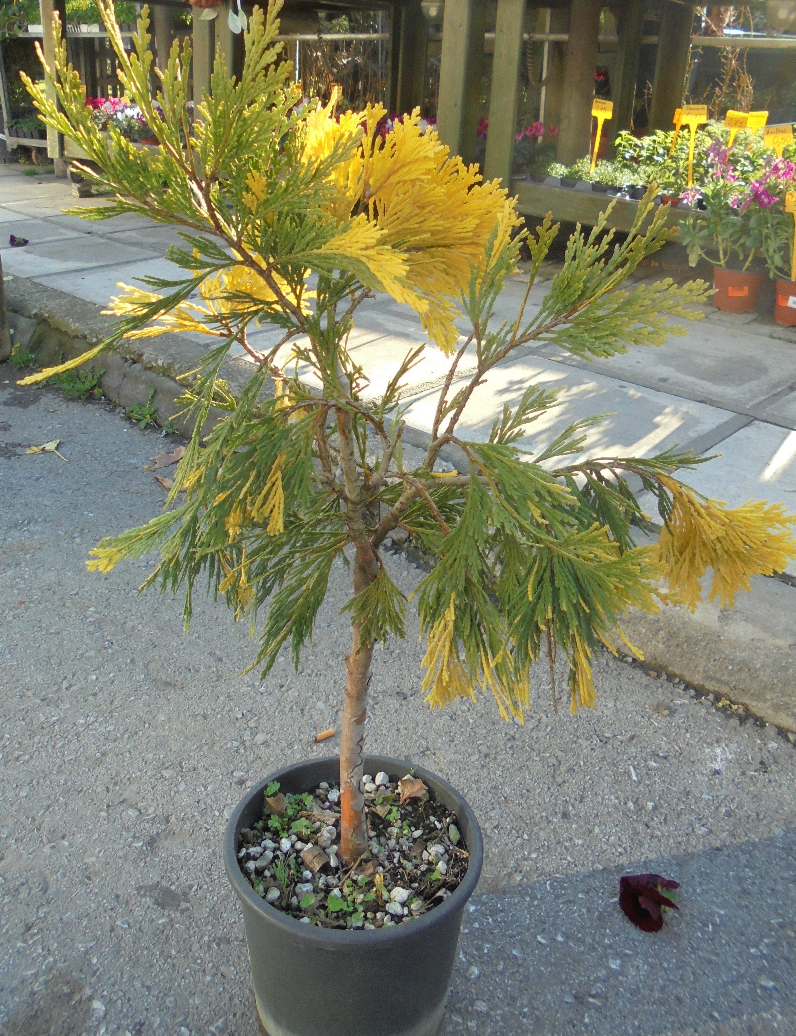 Conifers shaped kolonoeides, moderate growth. Foliage with golden spots that give a special vitality garden, aromatic, with ramifications far closed. It is quite compact with a round top. Fyteftai individual, groups, fences. Withstands -20 / -30 degrees.