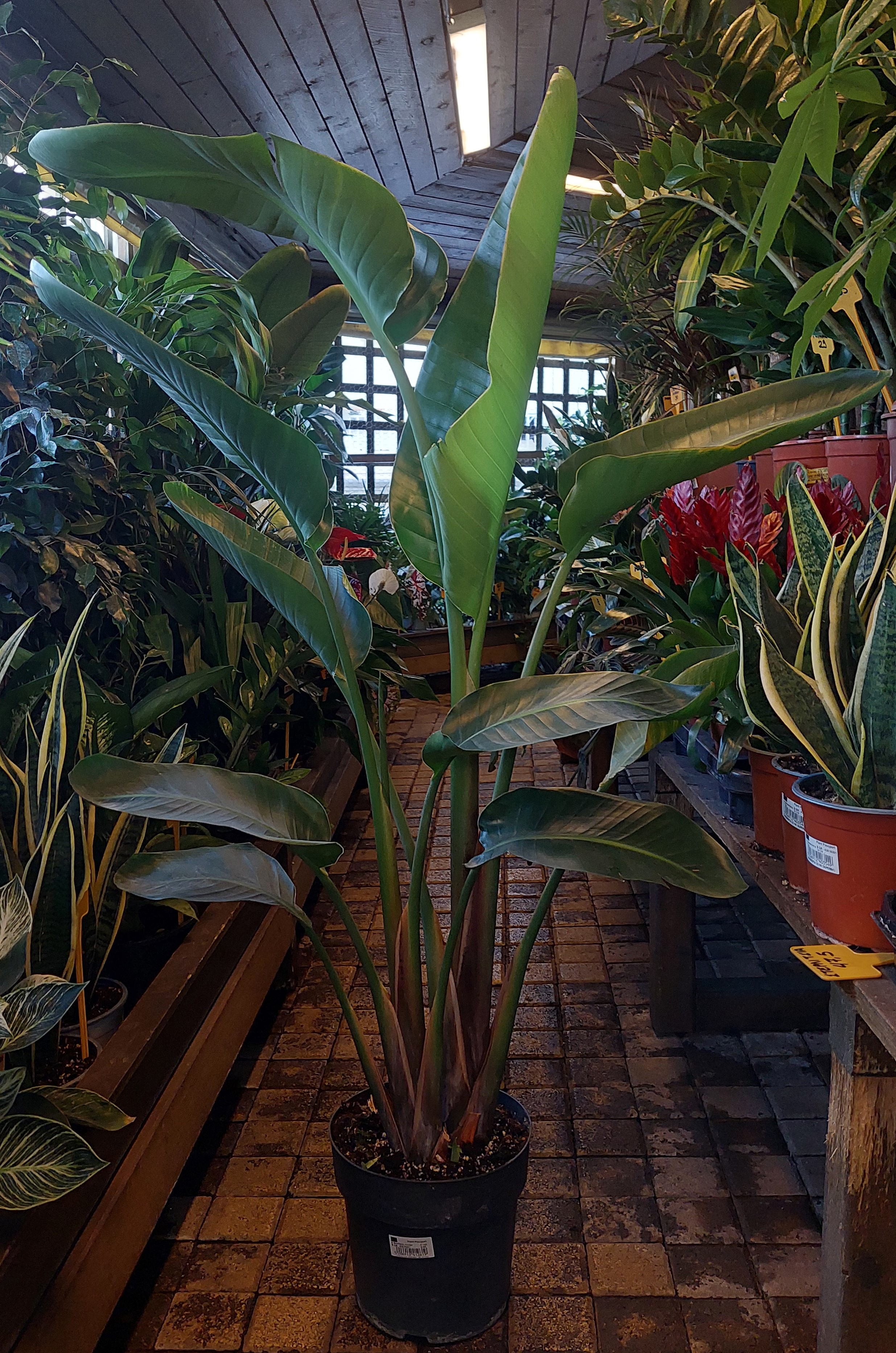 Upright evergreen plant that reaches height and diameter 1,20-1,50 m. This plant is known as "Bird of Paradise". Bring aquamarine foliage with contrasting ribbing. Flowering December to June with striking bright orange and purple flowers peek through green bracts purple shades. Suitable for fertile, cool and well-drained soils and sunward or semi-shaded positions. Planted in pots and small gardens. Withstands up to -2 degrees.