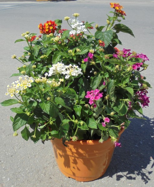 Evergreen shrub with a height and diameter 0.80-1m.The foliage is aromatic, with bright green and ovate, pointed, serrated leaves.It has small flowers in spherical apical inflorescences and their colors vary from plain as red, pink, orange, up yellow-red, creamy white or pink yellow discolorations that bloom during May until winter.Suitable for soils with good drainage, that is, without humidity soils.It is planted in pots or window boxes, rock gardens, low fences.It holds at low temperatures to -4/-5 degrees.