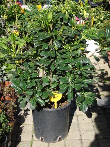 Evergreen shrub very common in Mediterranean countries with a maximum height of 3-4m in diameter from 1.50 to 2.50 m. Leathery, deep green foliage with rounded edges,it has creamy-white flowers in April-May. It fits easily in sunny, semi-shaded and shaded areas. Suitable for coastal planting. Planted singularly, in groups, and potting medium height fences. Withstands temperatures up -8/-10 ° C.