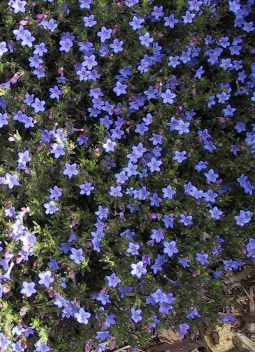 Bright blue flowers, dark green foliage and its low-growing habit combine to make the Lithodora a colorful plant to use in the sunny landscape. Along with Ceanothus. Ajuga, and Gentians this plant is one of the best blue