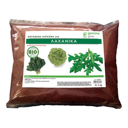 Organic fertilizer suitable for vegetables such as lettuce, chard, asparagus, broccoli, cabbage, seedlings, etc. Thanks to its high content of fully organic nitrogen, Gemma's vegetable fertilizer provides a continuous source of nitrogen release, making it ideal for fertilizing cabbage/vegetables as well as young plants (seedlings). Its mild action ensures the avoidance of plant burn or soil salinization. Its composition makes it ideal for all organic crops. Compound organic fertilizer NPK 9-3-3 (9% Total nitrogen N, of which 9% is organic nitrogen, 3% Phosphorus pentoxide P2O5 soluble in water and neutral ammonium citrate, 3% Potassium oxide K2O soluble in water, 65% Organic matter).